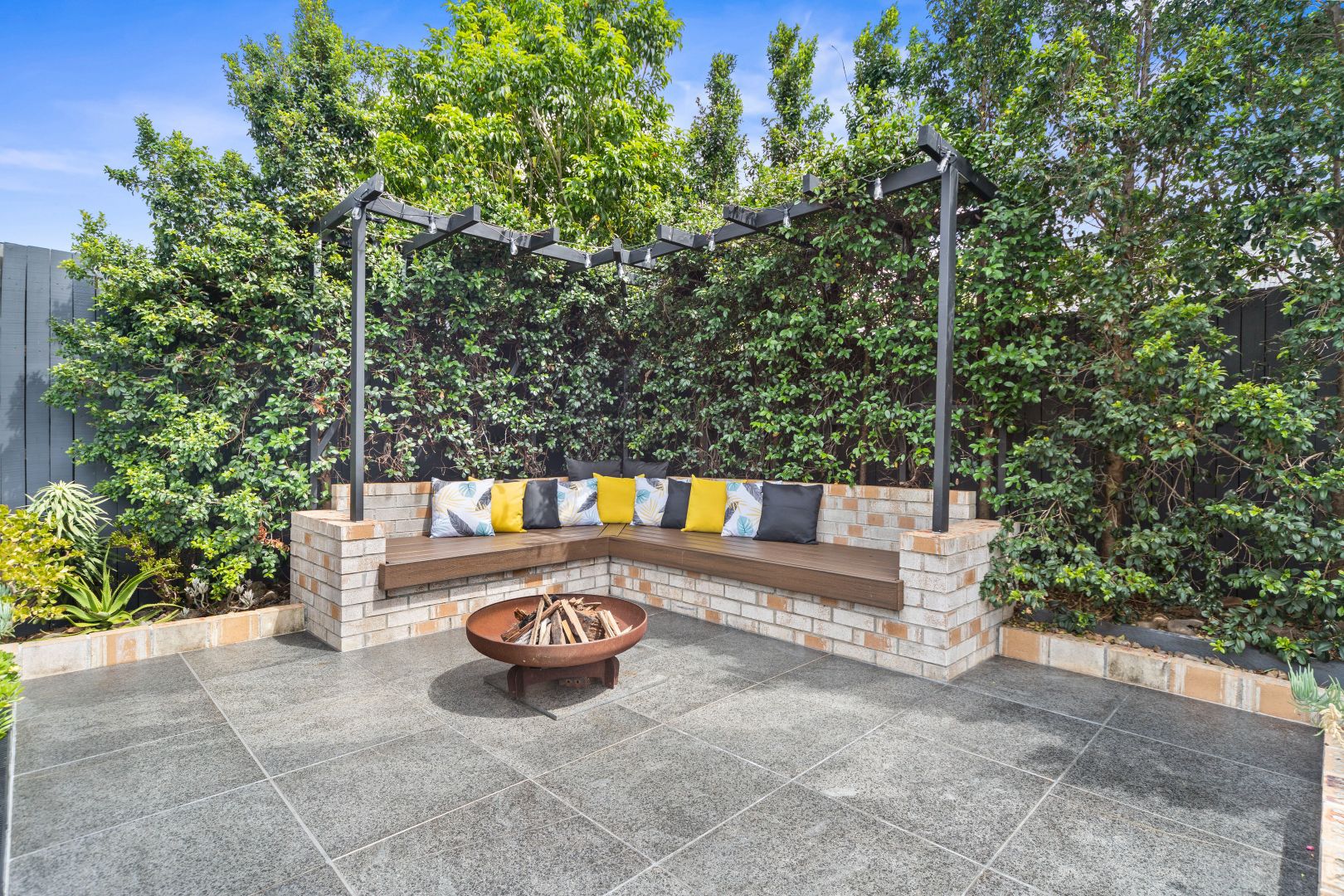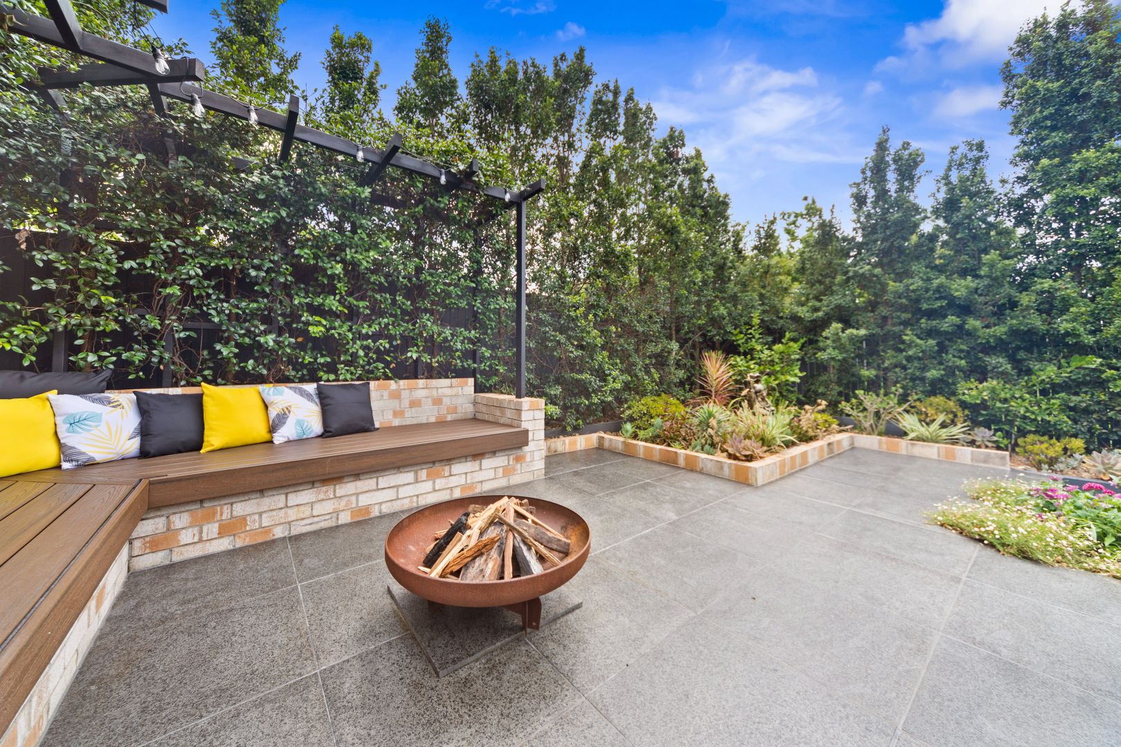 The kitchen is a true home chef’s dream, featuring plenty of storage room in its ample cabinetry and butler’s pantry, tasteful pendant lighting fixtures, modern stainless steel appliances, and sparkling quartz bench tops with under-bench seating and waterfall edges. Adjacent to it, the open-plan lounge/dining room is filled with natural light coming through the window that faces the garden wall and expansive sliding doors leading to the alfresco. Boasting a built-in BBQ, a beverage fridge, a stunning fire pit area and built-in Sonos entertainment speakers, the alfresco is the perfect spot for hosting outdoor parties and casual gatherings!