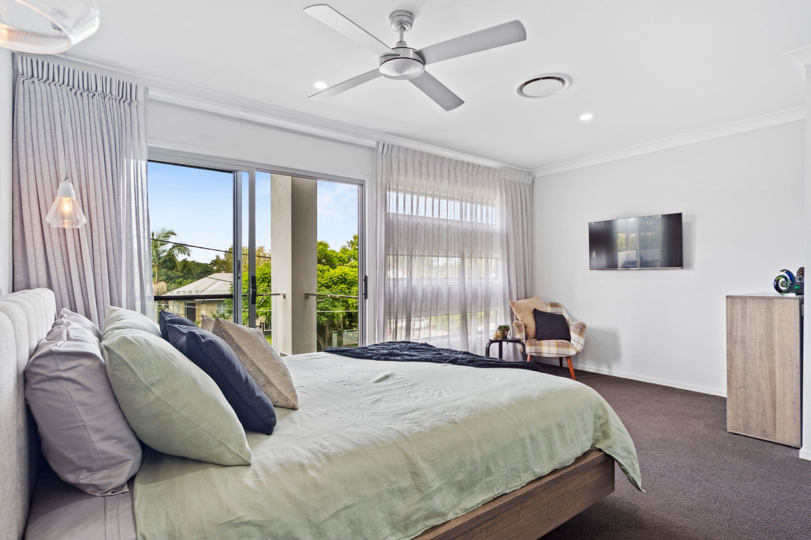 The main suite will make you feel like you’re staying at a high-end resort, with its private balcony featuring stunning views of Mt Coot-tha, a generously sized walk-in wardrobe, and a deluxe ensuite with a walk-in shower (including shower niche), a private WC, glamourous double vanities, sparkling quartz benchtops, built-in mirrored cabinets, a heated towel rack, and floor-to-ceiling tiles.